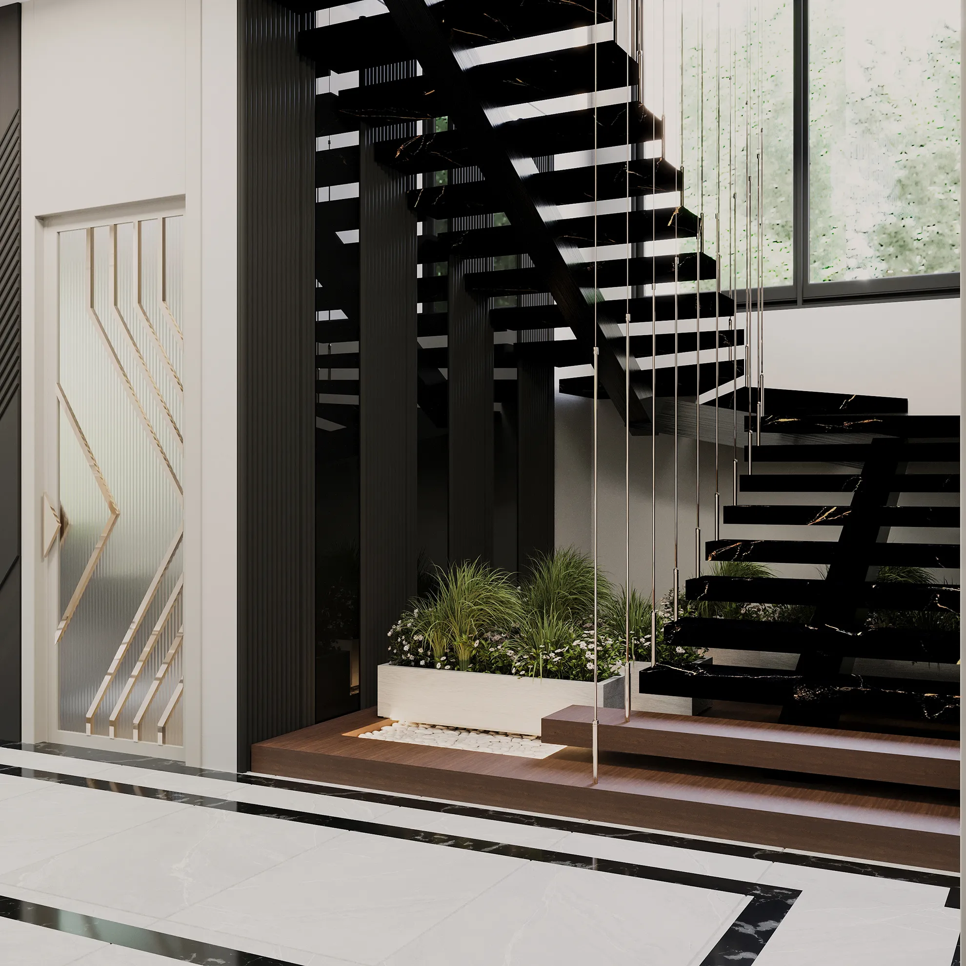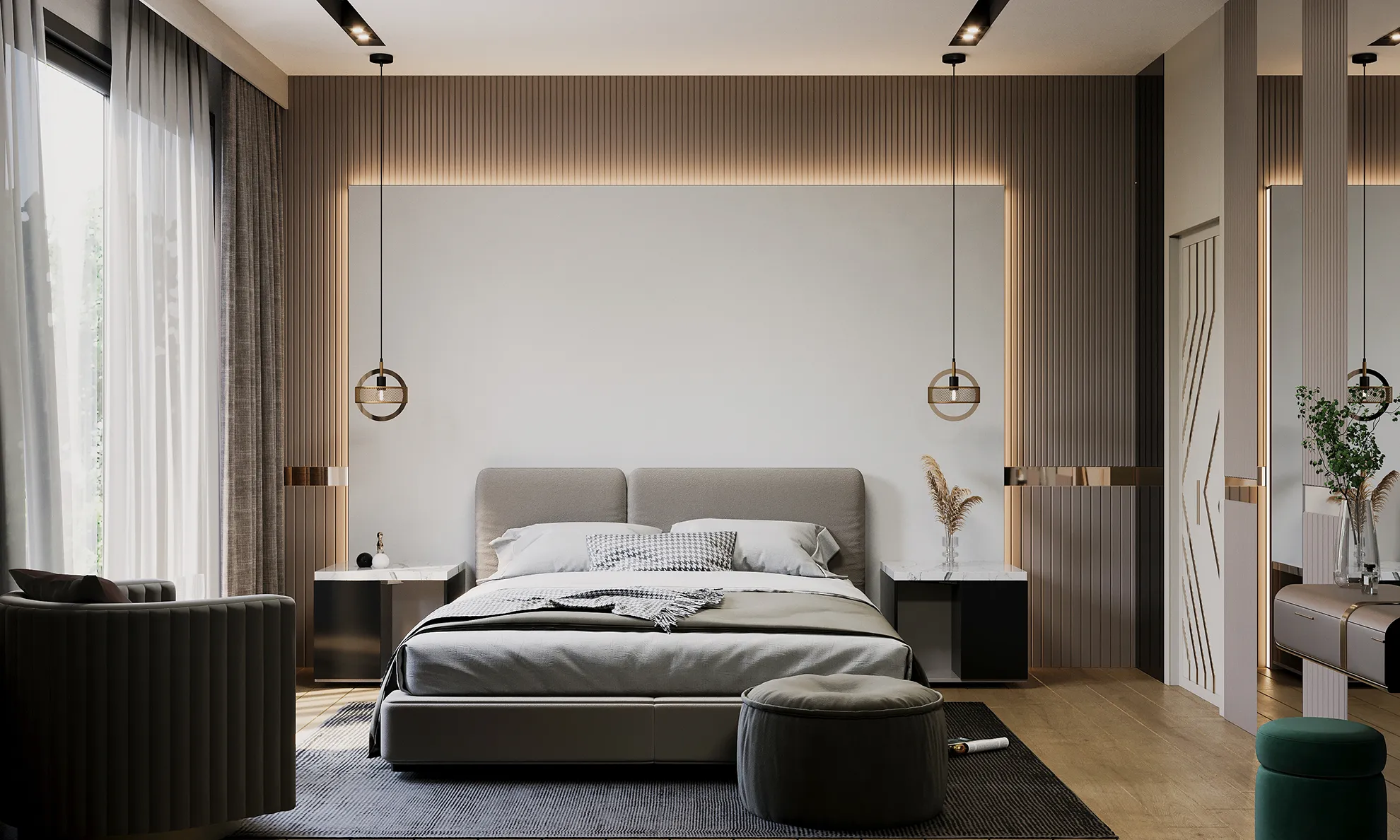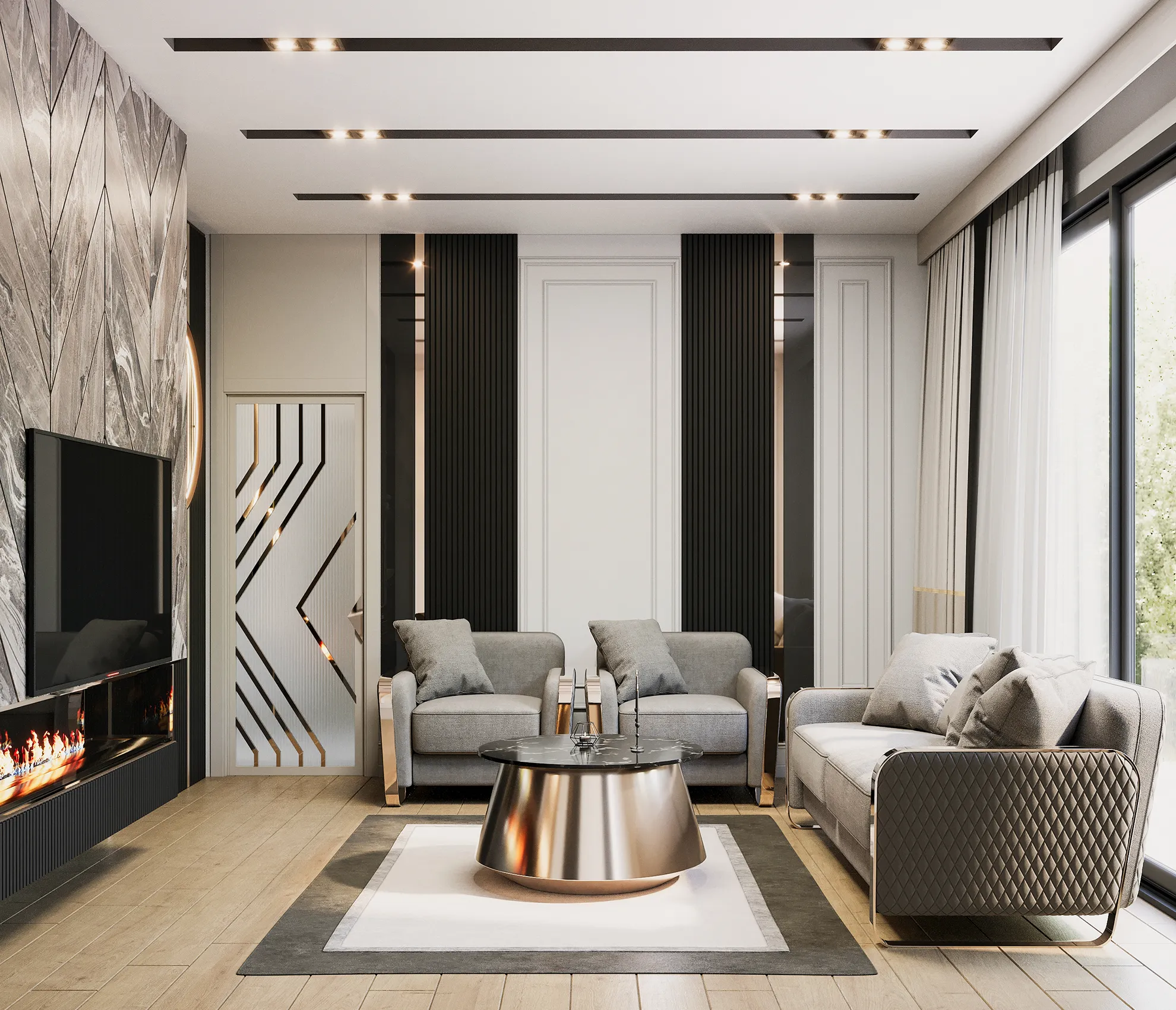 - Otomatik Panjur Sistemi: Panjurlar, akıllı ev sistemiyle senkronize çalışacak şekilde entegre edilmiştir.