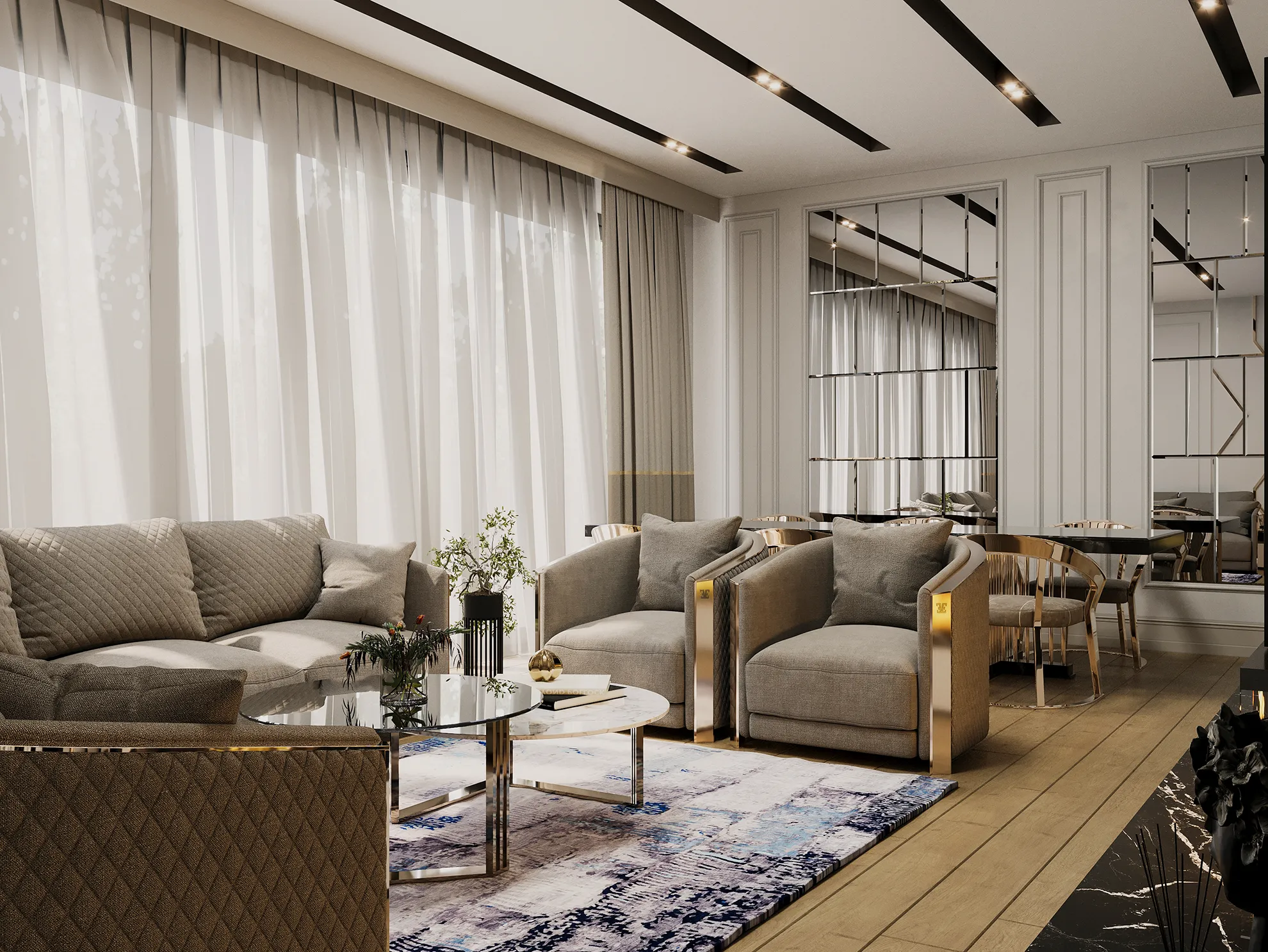 - Kapalı Balkon ve Balkon Isıtma Sistemi: Dört mevsim konfor için tüm balkonlar kapalı sisteme sahiptir ve ayrıca ısıtma sistemiyle donatılmıştır.