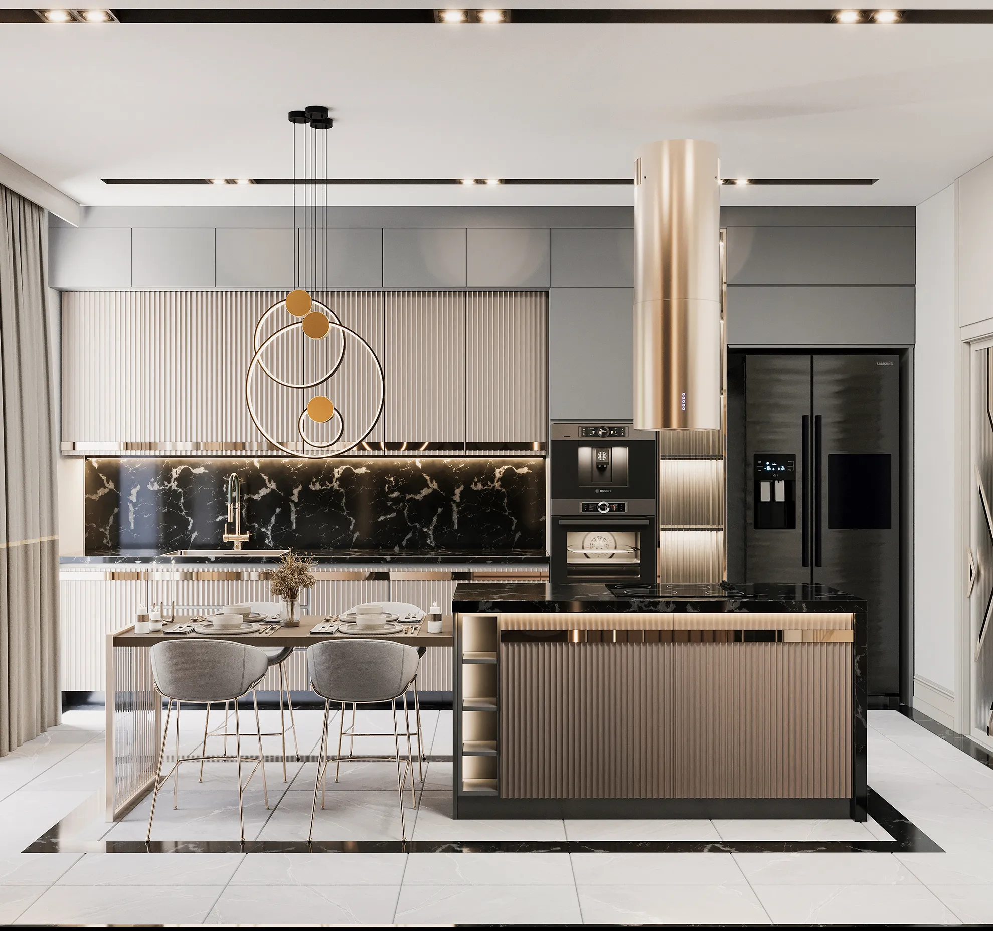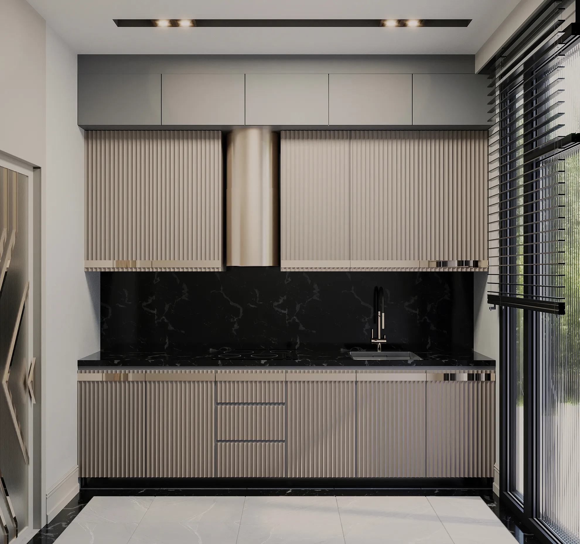 - 1. Sınıf Tezgâh Mermeri: Mutfaklarda estetik ve dayanıklılığı bir araya getiren üst segment doğal taş kullanılmıştır.