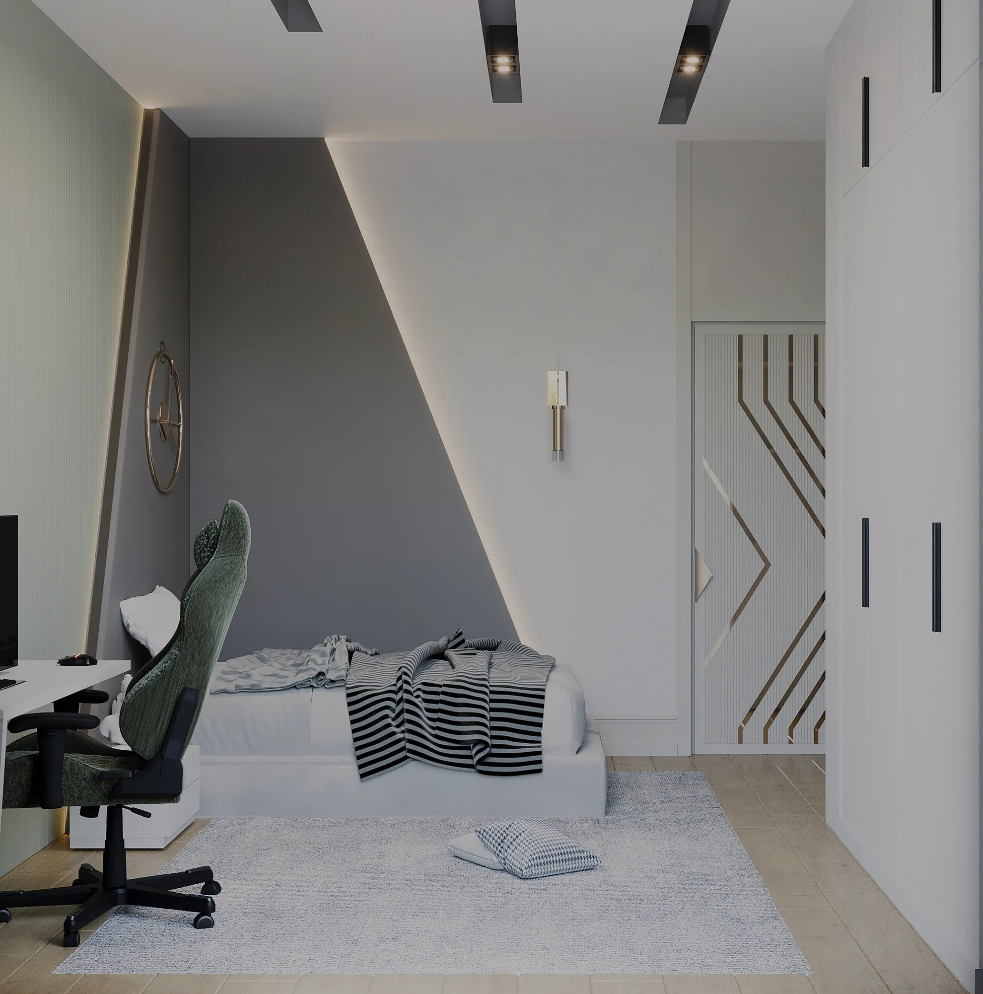 - Tüm Sabit Mobilyalar Dahil: Mutfak dolapları, çocuk odası ve giyinme dolapları proje kapsamında eksiksiz şekilde yerleştirilecektir.