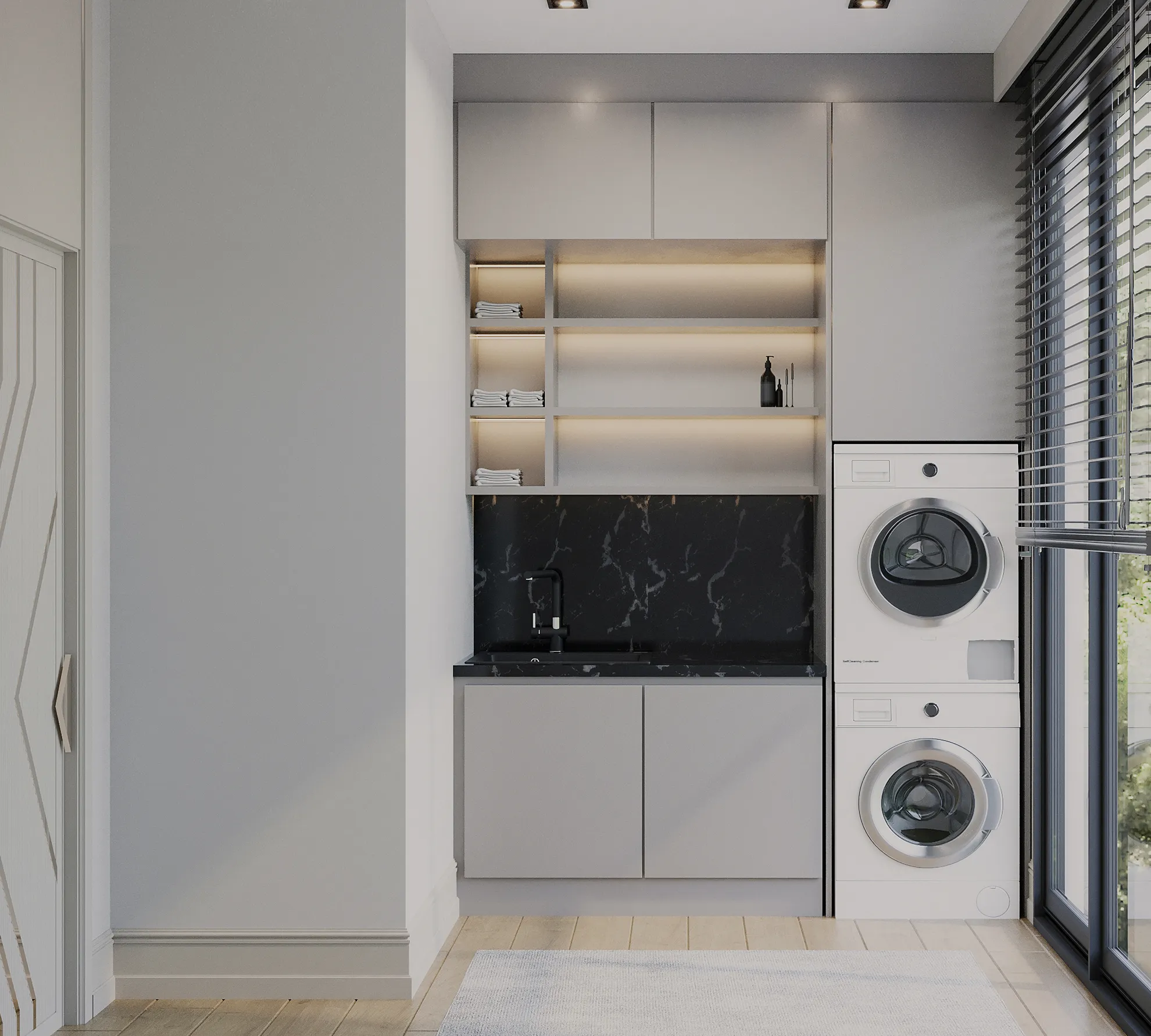 - Otomatik Panjur Sistemi: Panjurlar, akıllı ev sistemiyle senkronize çalışacak şekilde entegre edilmiştir.
