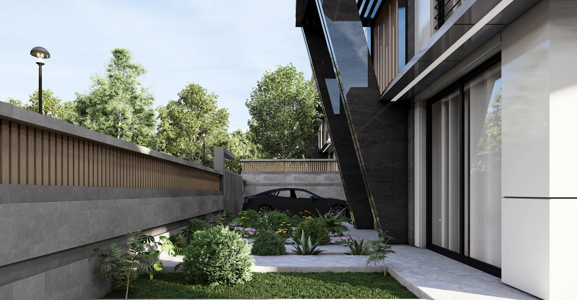 - Bağımsız bahçe ve otomatik giriş kapısı